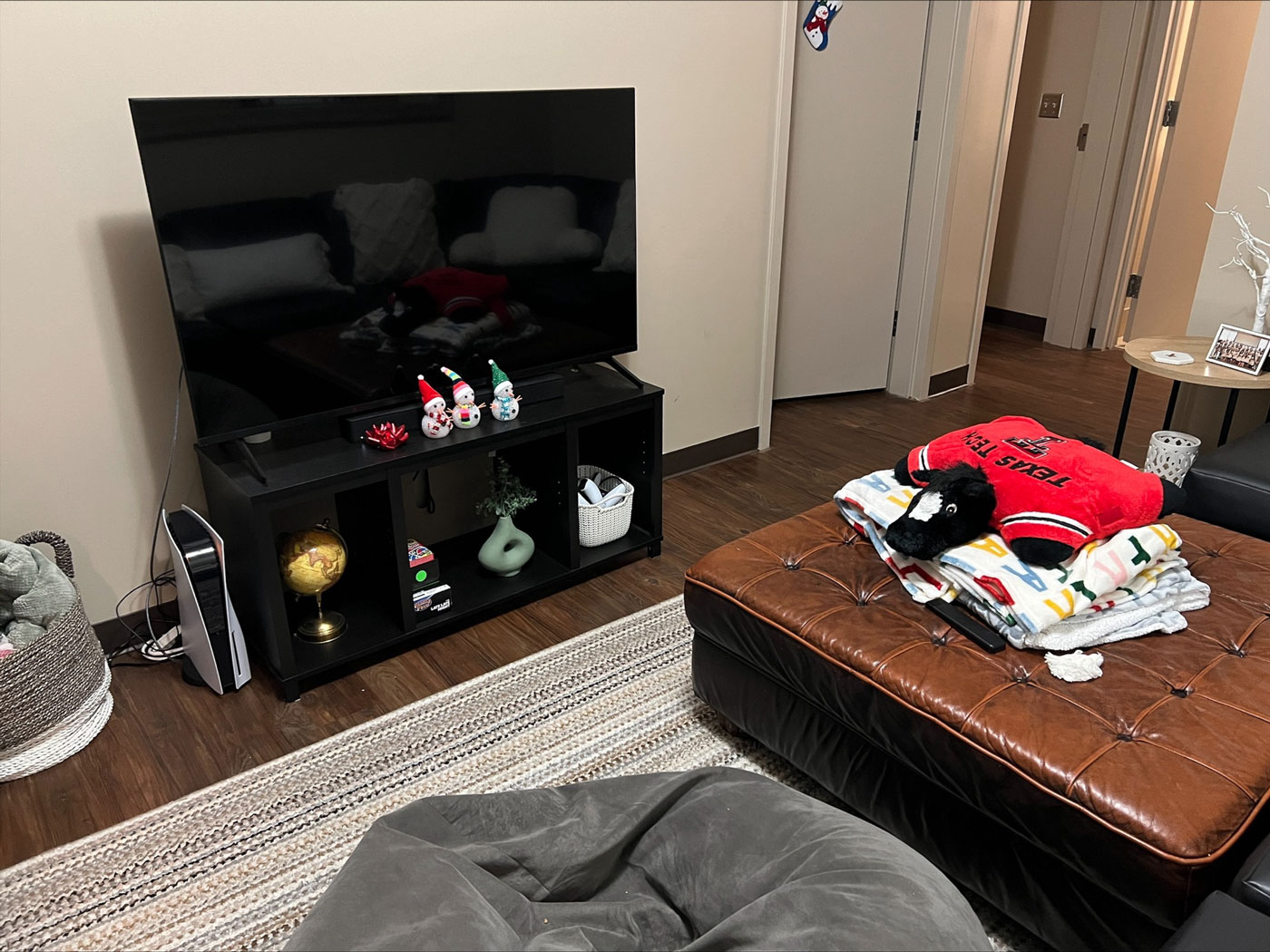 Gathered in a pile on the floor of a student residence hall room at Texas Tech University are several packages of all sizes, wrapped in ribbons and topped with bows.